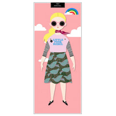 Diese vollständig zusammengebaute Papierpuppe ist mit einem Klettverschluss am Hintergrund befestigt und kann leicht entfernt und wieder angebracht werden. Entfernen Sie die Puppe, um mit ihr zu spielen oder ihre Outfits zu wechseln. Mini-Metallklammern werden verwendet, um die Puppe zusammenzubauen und spielerische Bewegungen zu ermöglichen. Wenn Sie neue Puppen zu Ihrer Sammlung hinzufügen, können Sie die Garderobe nach Belieben kombinieren. Verpackt in einer klaren Zellophanhülle. Verpackungsgröße: 5,5" x 13". Größe der zusammengebauten Puppe: 12" hoch.