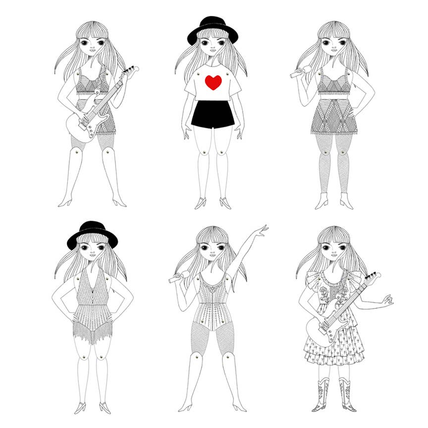 Spielen Sie wie Taylor Swift mit diesem Coloring Paper Doll Set. Es enthält drei Blätter mit Outfits im Format 8,5 x 11 Zoll zum Ausschneiden, Ausmalen, Zusammenbauen und Spielen. Sie sind auf demselben Kartonpapier gedruckt wie alle unsere Papierpuppen. Sie sind in einer durchsichtigen Cellohülle verpackt und werden mit einer Anleitung sowie einem Satz Mini-Brads zum Zusammenbauen geliefert. Ungefähre Größe der zusammengebauten Puppe 30,5 cm hoch. Ab 8 Jahren. Hergestellt in den USA.